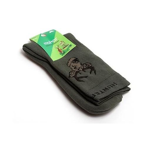Termo lovačke čarape-sokne s upletenom siluetom jelena maslinasto zelene boje.