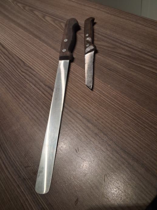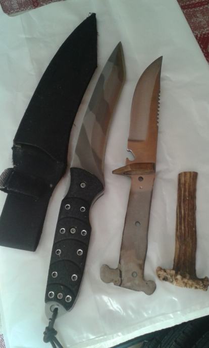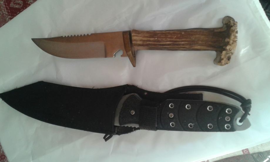 Lovački nož sa kožnim koricama, i jednim dijelom roga...