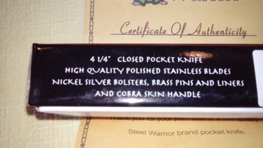 Nož kolekcionarski STEEL WARRIOR COBRA TRAPPER SW-108CSS3.