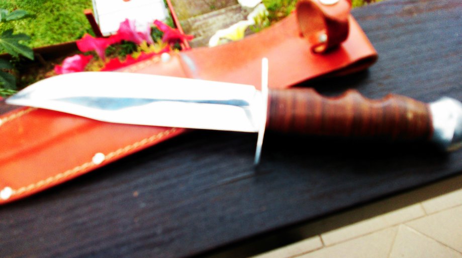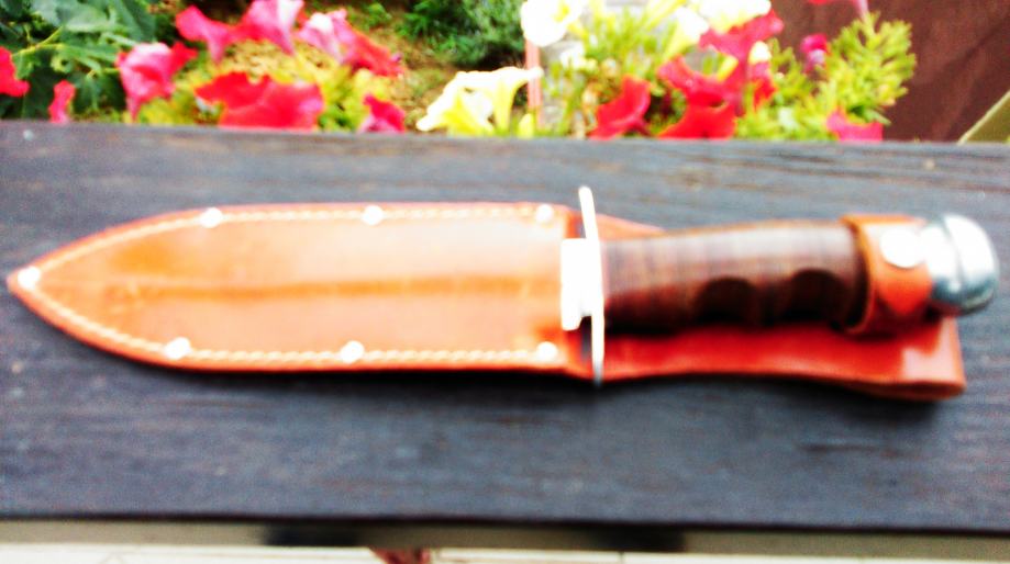 kvalitetan lovački nož BOWIE, original USA. dužina sječiva 15cm,dužina sa drškom 26,5 cm.originalna futrola od čvrste kože. jako malo korišten u vrhunskom stanju, kupljen 1981 godine.