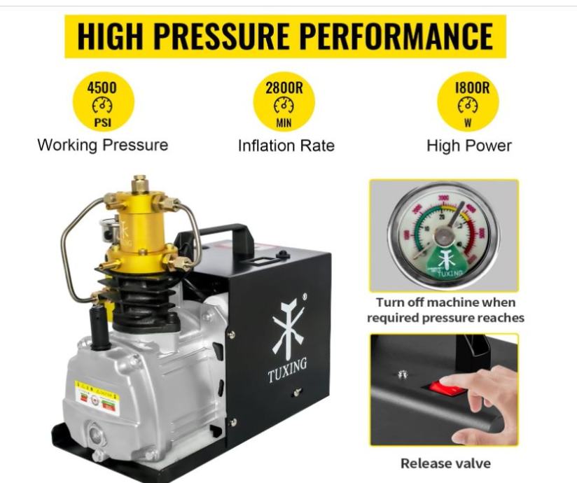 【Super velika brzina napuhavanja】Ronilački kompresor ima super veliku brzinu napuhavanja, može napuniti 0,5L cilindar do 30Mpa u 3 minute;
