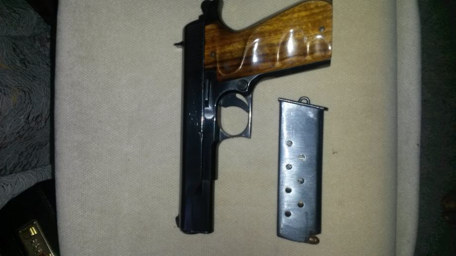 Prodajem navedeni pistolj ,imaocu dozvole .Pistolj je u perfektnom stanju.Anatomska drska od mahagonija,vidi slike.uz njega ide okvir sa nesto metaka org.kozna futrola pribor za ciscenje I kutija za drzanje oruzja sa kljucem.Idealan za kolekcionare stvarno JEDINSTVEN!
