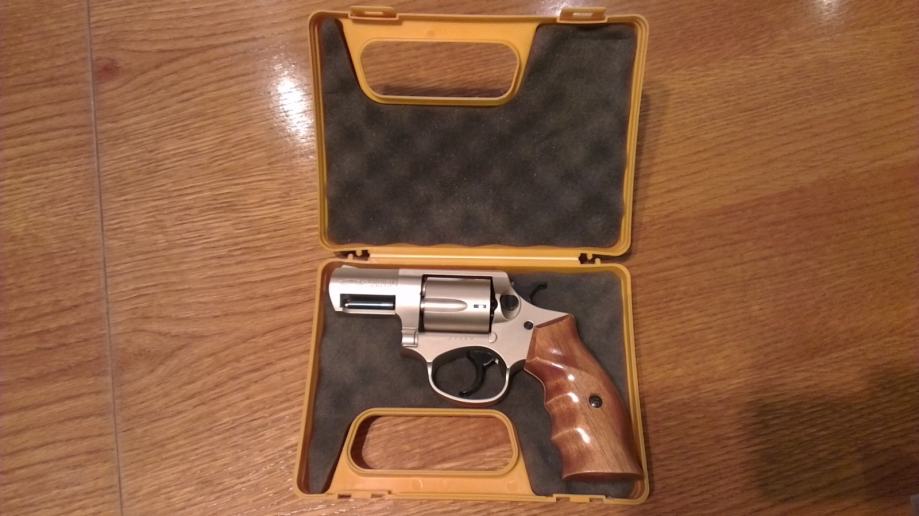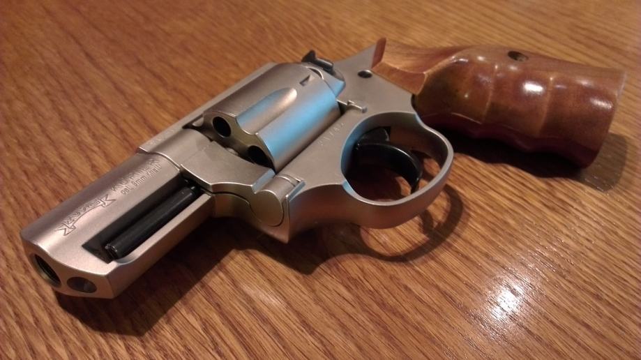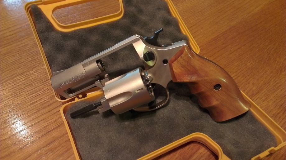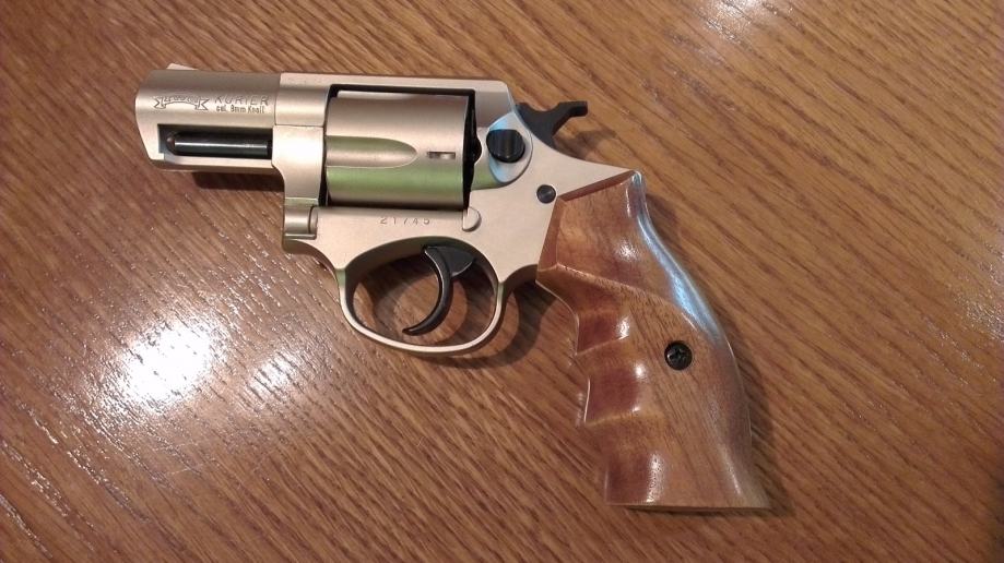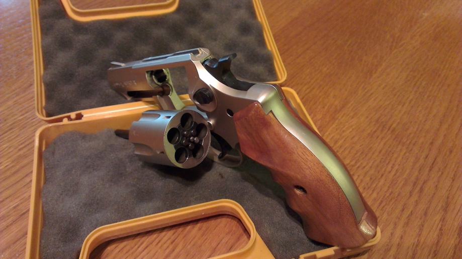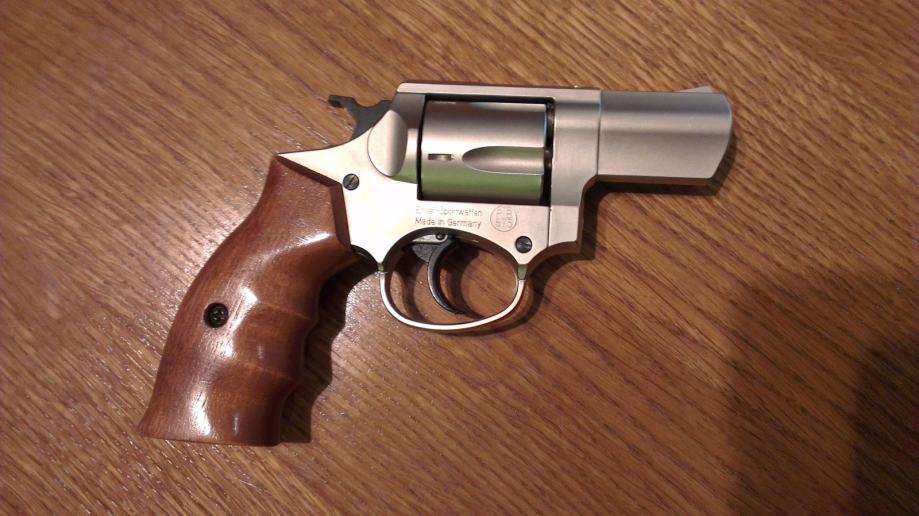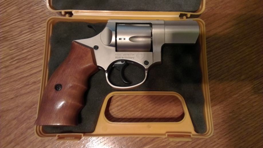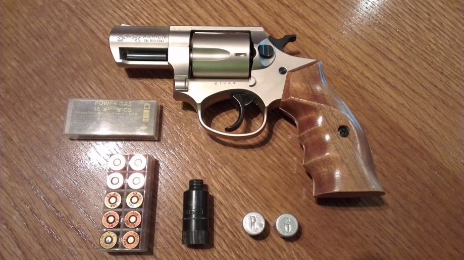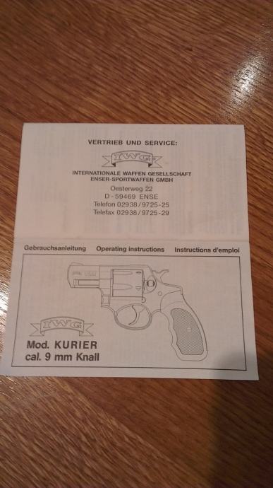 Plinski Revolver IWG Kurier 9mm, special edition (drvena drška), pištolj je kao novi, bez oštećenja, uz njega ide nastavak za rakete, plinsko streljivo, startno streljivo i rakete.