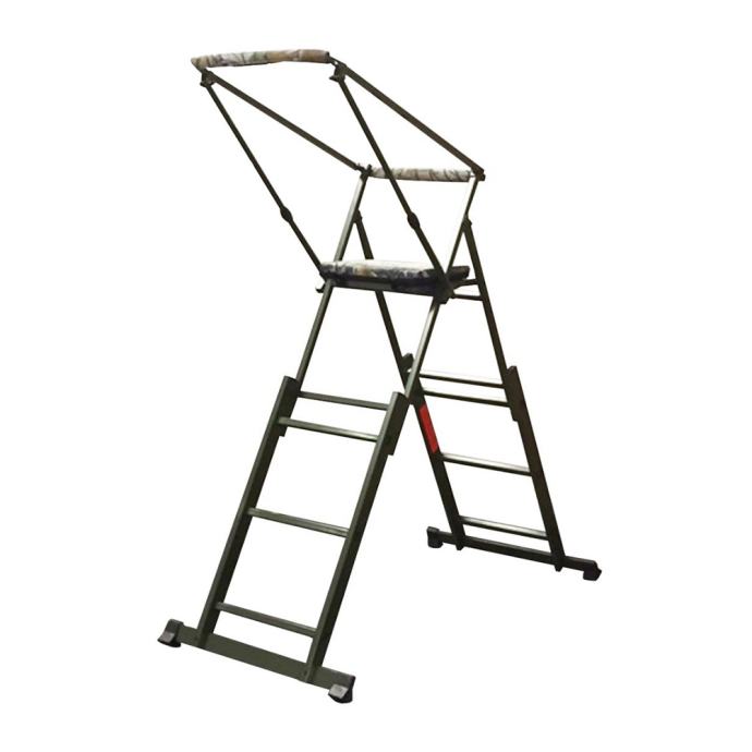 Sjedalica je opremljena podesivim naslonom za pušku, osloncem za noge i podstavljenim presvlakom sjedala u maskirnom uzorku. Stepenice ljestava otporne su na klizanje.