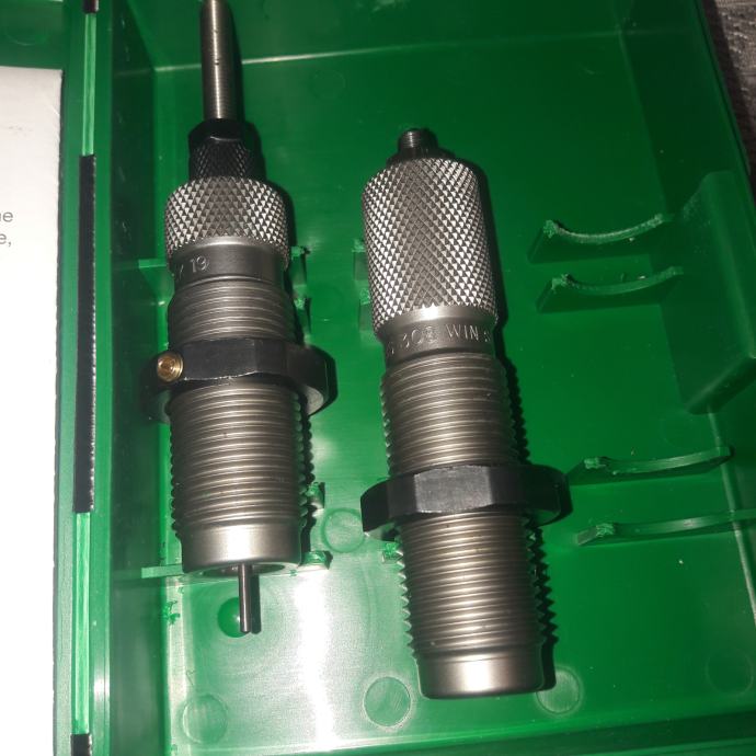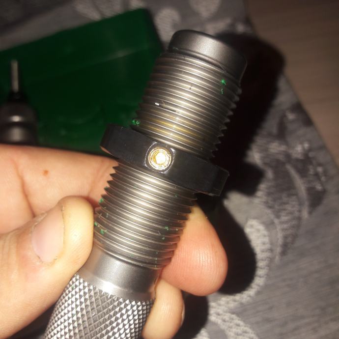 Nove i nekorištene matrice za kalibražu vrata čahure. Budući da je iskoristena čahura poprimila oblik ležišta ista samo kalibrira vrat za ponovno utiskivanne zrna čime se ista može koristiti puno više puta za punjenje.