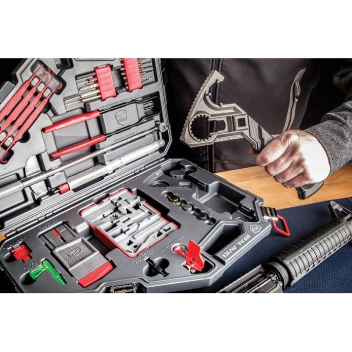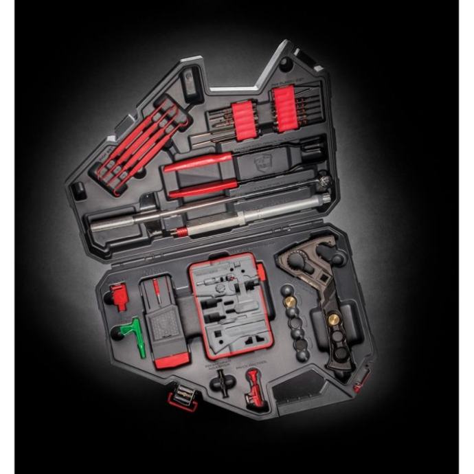 Kompletan kit za gotovo sve zahvate na AR modelima. U kompletu: glavni ključ, izmjenjive glave čekića, alat za osovine, AR blok za fiksiranje cijevi, osvjetljivač cijevi, sigurnosni umetak, zaključavanje rotacije tijela, moment ključ, vrhovi za čišćenje gareži, izbijač pinova, alat za poravnanje pinova, alat za rukohvat, blok za fiksiranje gornjeg dijela tijela. Isporučuje se u tvrdom koferu.