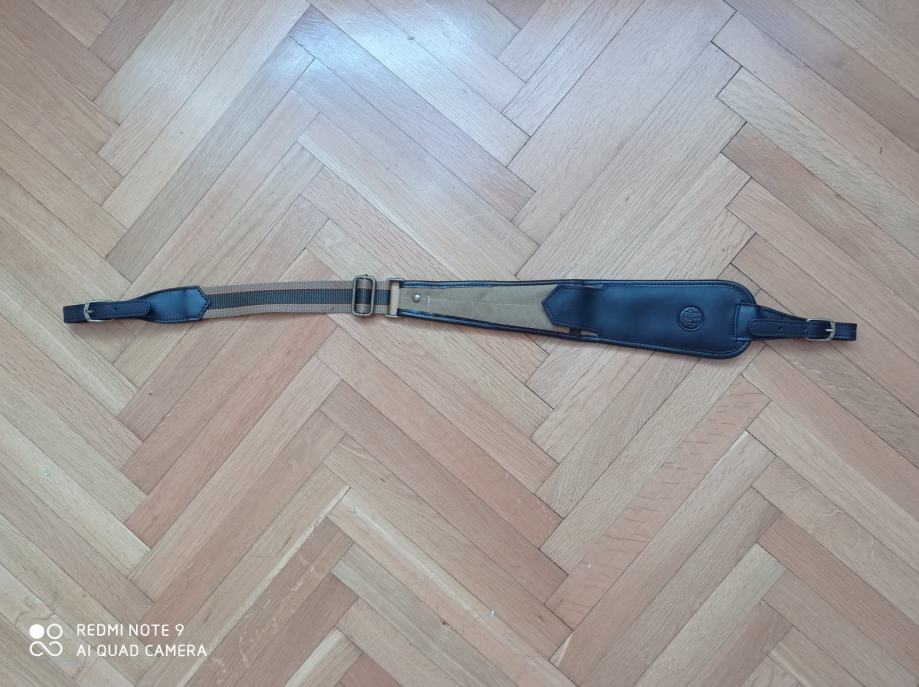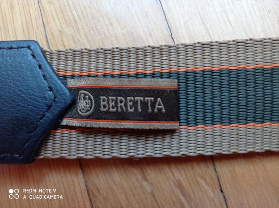 Remen za pušku, vrlo kvalitetan, materijal je prava koža i kordura, marke Beretta. Na sebi ima utore za dva komada karabinskog streljiva koji se zatvaraju. Gotovo nov, bez tragova korištenja, vrlo atraktivan, ne klizi sa ramena prilikom nošenja, kvalitetniji od ostalih na tržištu. U pola cijene.