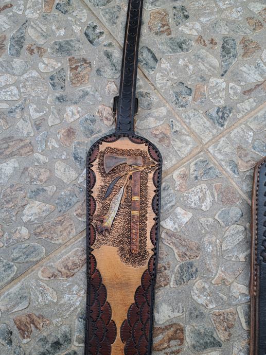 Rucni rad . Oba gravirana, uljena, bojana/oslikana sa najboljim materijalima na trzistu. Koža je iz najčuvenije američke Hermann Oak tanerije itd. Boje, konac, ulje, finiš, svaka molekula je od najboljeg sto ima. Eto ako želite unikat od naj materijala... Oba u tandemu su 300 eura ali prodajem ih i odvojeno. Slike su slikane mobitelom i brzinski tako da su uživo ipak druga priča.