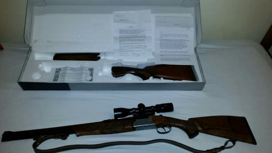 Prodajem kombinirku Sabatti u odlicnom stanju. Na pusci se nalazi rucno radeni kundak i potkundak po uzoru na Blaser. Gore je nova optika Yukon Craft 1,5-6x42 sa crvenom tockom i garancijom od 10god. Uz pusku ide i originalni kundak i podkundak koji su doslovno novi. Posjedujem sve papire od puske i optike. Moguca zamjena za jeftinije uz vasu nadoplatu.