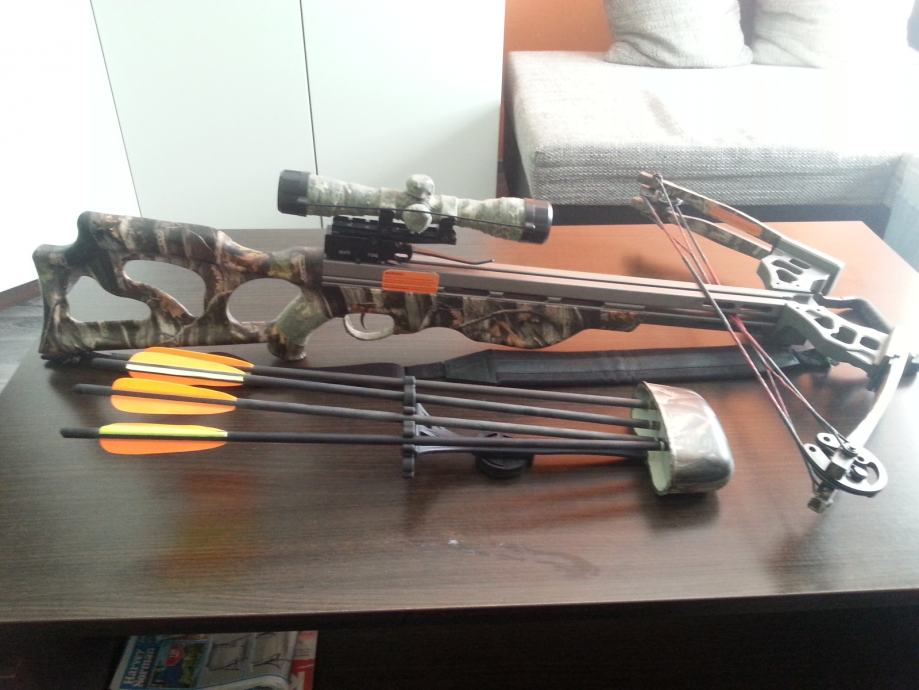 Skoro nov,ispucano svega 5 strijela.Uz samostrel ide zatezać tetive i 6 strijela.