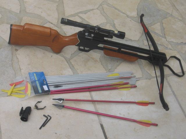 jako malo korišten sa japanskom optikom uz njega idu stijele i dva lovacka vrha te jos cca 20 strijela u izradi(nedostaje im vrh)