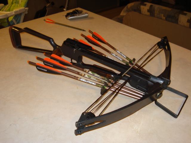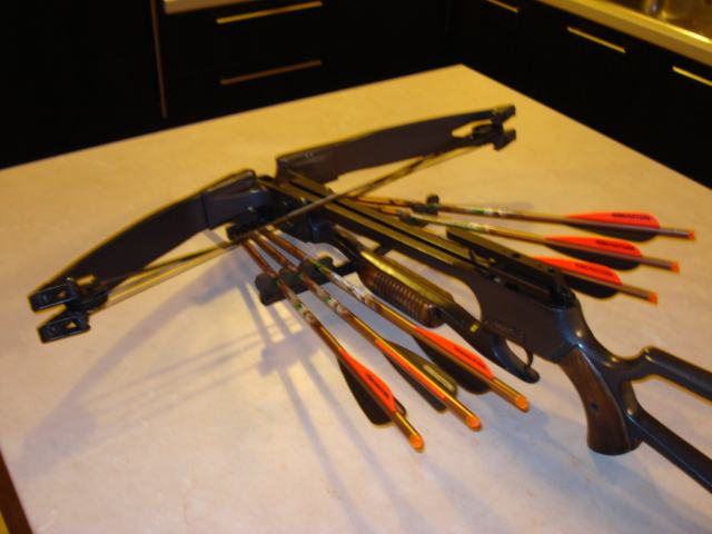 Prodaje se lovački samostrel Vilok Magnum. Compound konstrukcija, snaga 175 lbs, sa nosačem strijela te 6 lovačkih Easton alu strijela .Na samostrelu su novi camovi i tetiva, a uz njega ide napinjač, lovački vrhovi te vosak za tetive. Moguća zamjena za kvalitetan širokokutni ciljnik ili crvenu točku