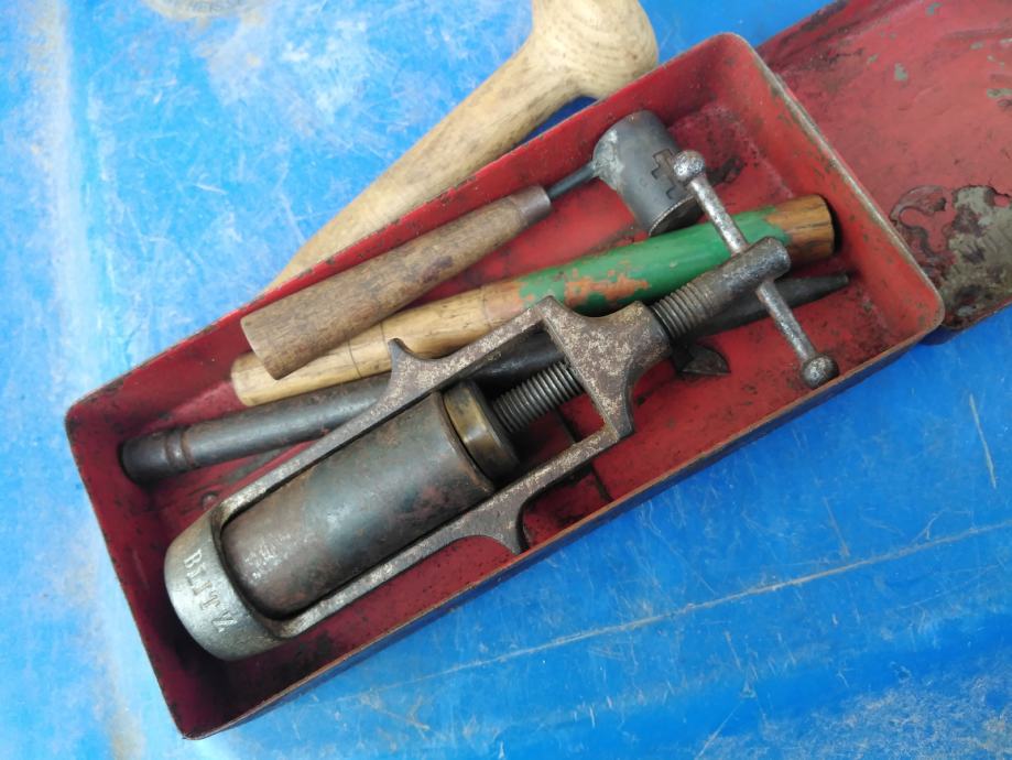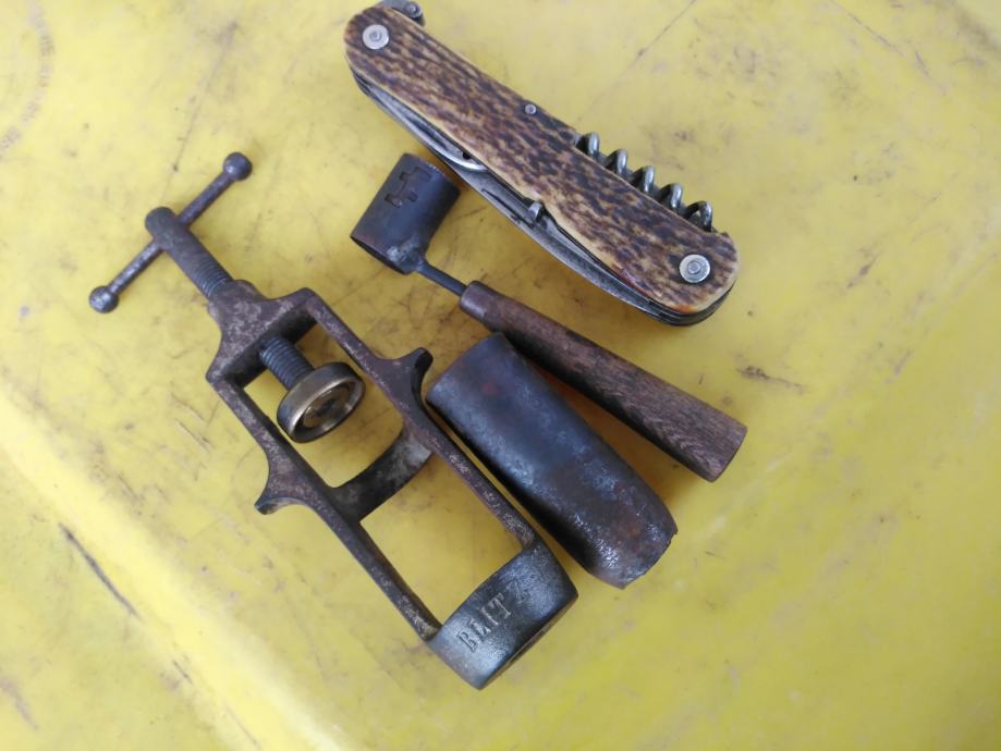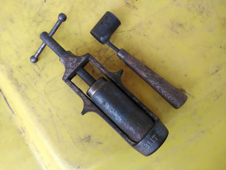 Lovački set za punjenje i rubljenje patrona,neobićan i rijedak model mašine za rubljenje marke Blitz.