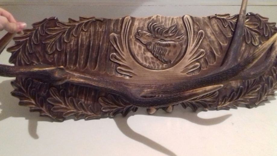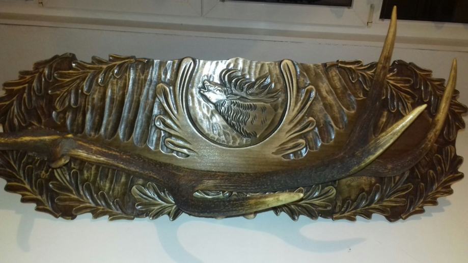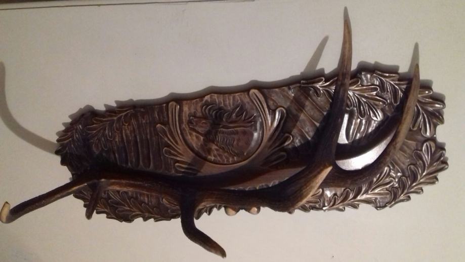 Vješalica je izrađena od rogova i ručno rezbarenim detaljima. Rogovi se koriste kada ih životinja odbaci te tako životinja ne trpi nikakvo nasilje ... Idealna su za lovačke prostorije i osobe koje obožavaju lov i prirodu, također je idealna za poklon lovcu ...