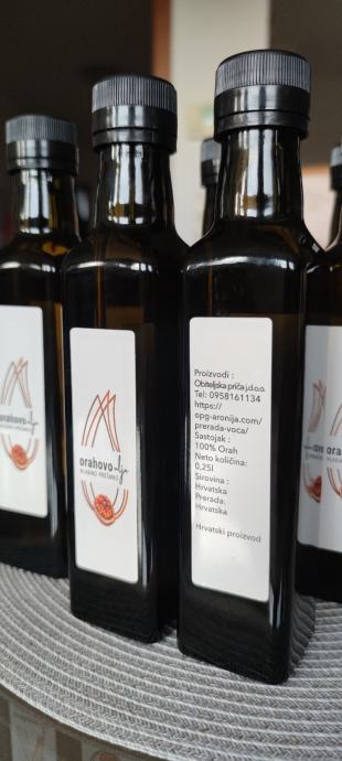 prodajemo hladno prešano ulje oraha. Pakiranje je u tamnim bocama od 250 ml za 7 eura po boci.