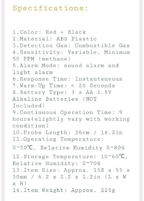 Detektor plina, audio i vizuani alarm, uputa za upotrebu