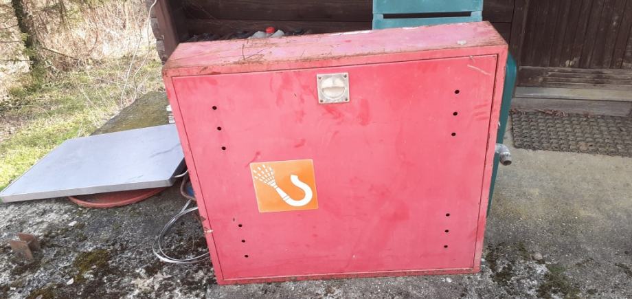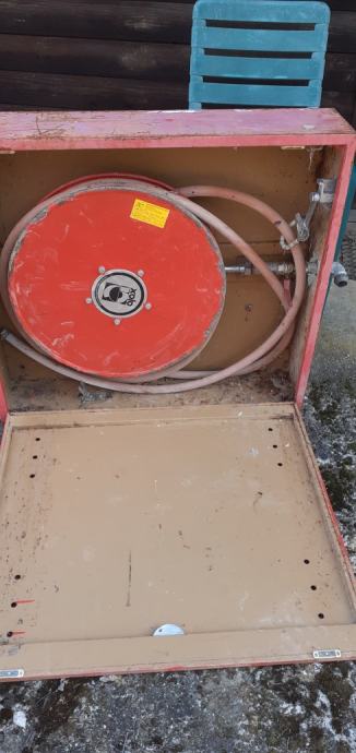Hidrant holandski u čvrstoj metalnoj kutiji s oko 25 m vrlo kvalitetnog profesionalnog vatrogasnog crijeva, pogodan za vani-moguća dostava zg-vž-moguća zamjena-pogodan za napajanje stoke-veliki protok vode ili za hidrant sve ispravno-profesionalna holandska vatrogasna oprema-zamjene razne-janjci odojci,svinja-
