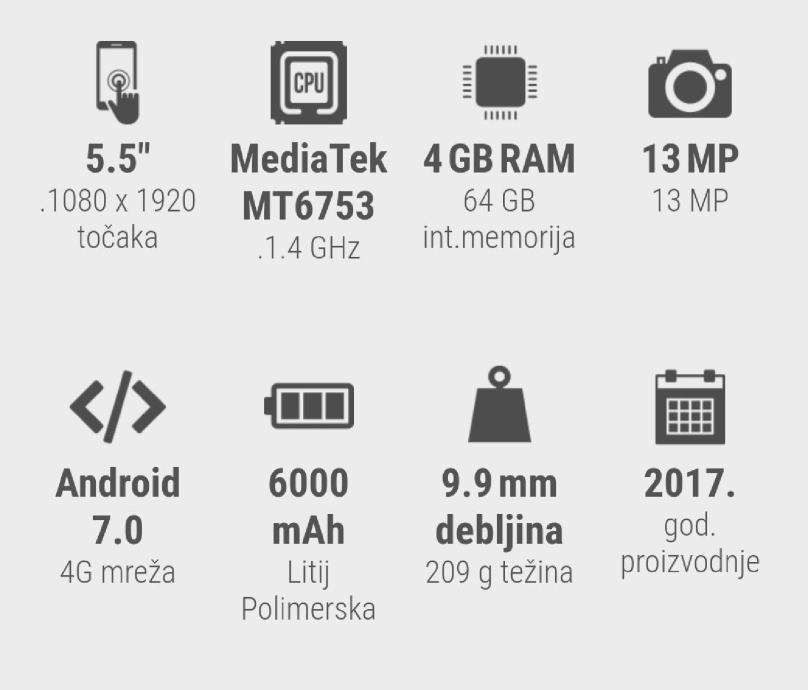 Original smartphone OUKITEL K3Pro, stjecajem okolnosti rabljen iznimno kratko vrijeme, niti mjesec dana! Stanje telefona je besprijekorno, na tvorničkim je postavkama, u originalnoj K3 Pro crnoj kutiji, sa svom popratnom originalnom opremom, sa originalnom smeđom kožnom futrolom koja u sebi ima integriranu crnu silikonsku maskicu ( koju nije moguće kupiti na HR tržištu), plus, dodatno sa potpuno novom originalnom crnom silikonskom zaštitnom maskicom, novim priključnim Micro USB originalnim kabelom sa punjačem! Na poleđini telefona instalirani su specijalni "Gold stickers" pojačivači signala, koji osiguravaju signal i tamo gdje ga drugi gube! Telefon je jednostavno u savršenom stanju, izvanrednih tehničkih specifikacija uz maksimalan omjer "uloženo-dobijeno"! Vjerojatno jedan od najkvalitetnijih Oukitel smartphona! Moguća je i dostava za RH putem HR pošte!