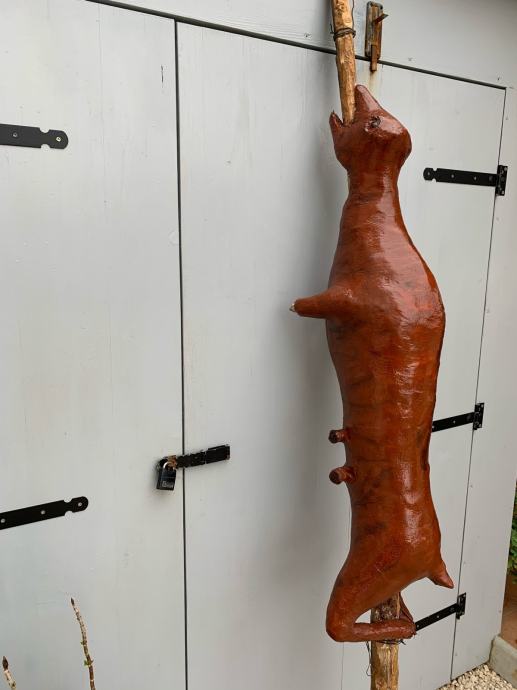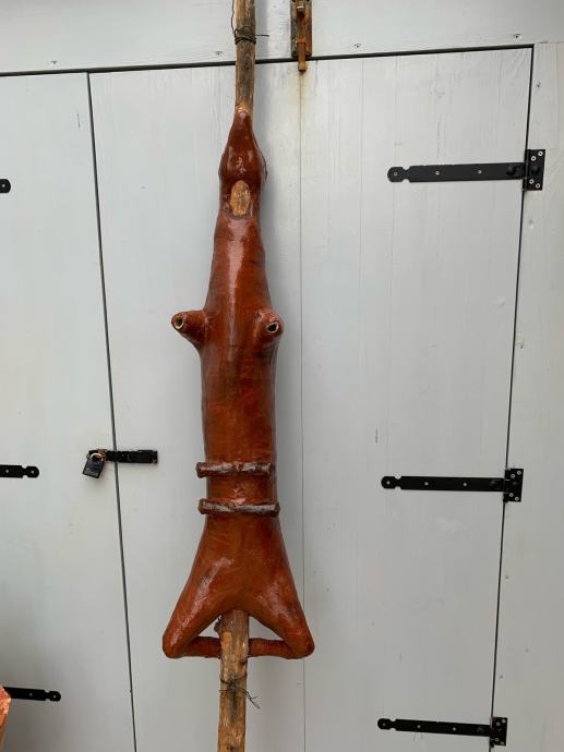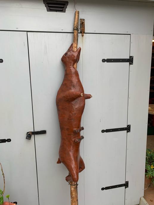Radi se o vrlo uvjerljivoj maketi pečenog janjeta na drvenom ražnju, stabilne i vrlo kvalitetne izrade! Prvenstveno namjenjeno za reklamu za Restoran ili Pečenjaru!