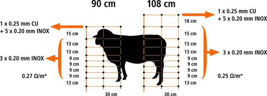• visina 90 cm (7 vodoravnih žica) ili 108 cm (8 vodoravnih žica), svaka dostupna s jednim ili dvostrukim zupčanikom 660,00 kn