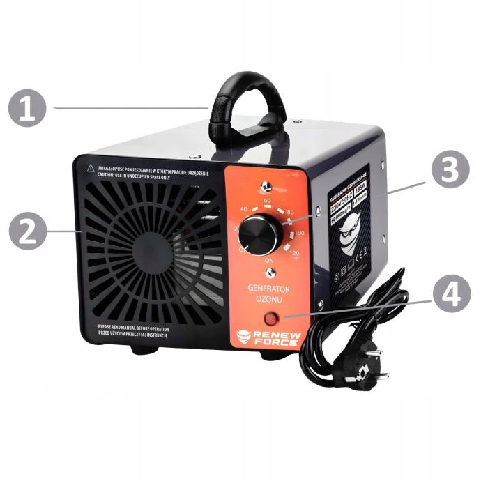 Generator ozona djeluje na takav način da stvara ozon koji oksidira i uništava štetne tvari u zraku, učinkovito uklanjajući mirise, alergene, bakterije i plijesan. Uređaj je jednostavan za upotrebu jer ga jednostavno uključite, postavite vrijeme rada i pustite da radi vaš posao.