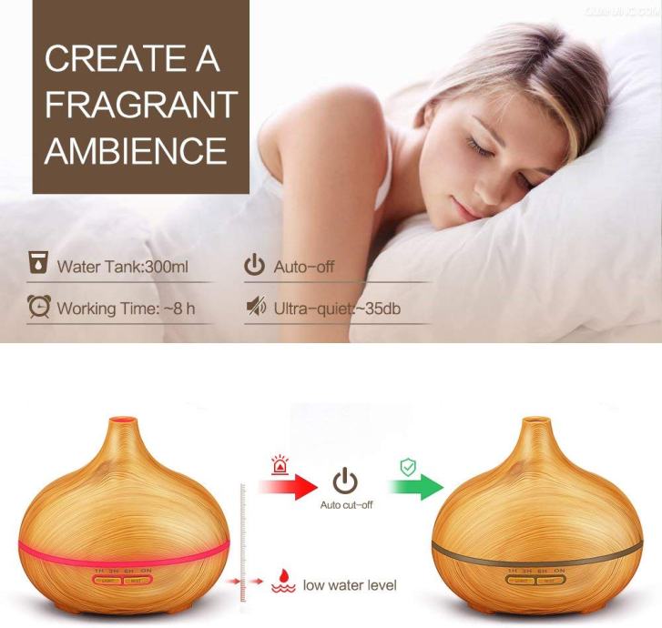 Duže vrijeme maglice do 10 sati. Spremnik za vodu: 300ml. Može trajati 6-10 sati. 2 izbora magle: slaba i jaka.