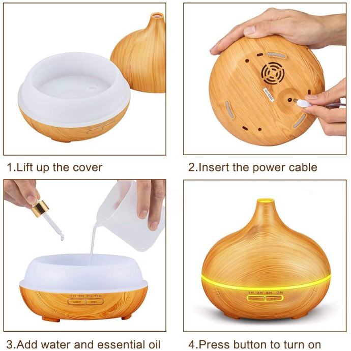 Ima 4 mogućnosti tajmera. Četiri načina podešavanja vremena: 1 sat, 3 sata, 6 sati ili kontinuirano isparavanje. Stvaranje umirujućeg, opuštajućeg i sigurnosnog okruženja isparavanjem ugodne maglice u prostor. Automatsko isključivanje nakon potrošnje vode.