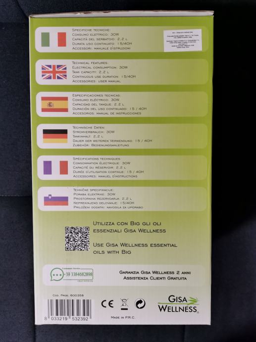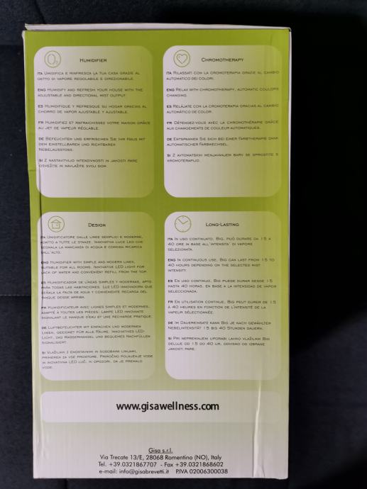 BIG je ultrazvučni ovlaživač zraka u koji se mogu dodati eterična ulja. Stvara ugodan ambijent zahvaljujući eteričnim uljima i ovlažuje prostor.