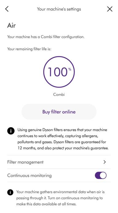 • WiFi pristup s Dyson Link aplikacijom omogućava praćenje i kontrolu pročišćivača ovlaživača i kad niste doma. Obavještava kada uređaj treba čišćenje ili treba zamijeniti filtere.