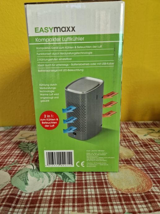 Prodajem EasyMaxx rashlađivać i osvježivać zraka. Uređaj ima dvije brzine rada a napajanje može biti putem baterija ili mikro B USB priključka (kao punjenje mobitela). Uređa je nov i nekorišten.
