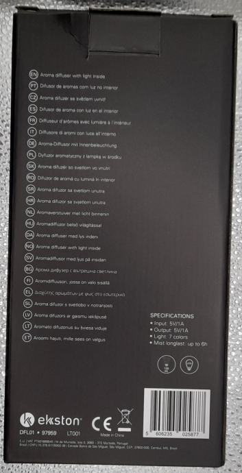 Ekston aroma difuzor DFL01 – NOVO, LED, USB