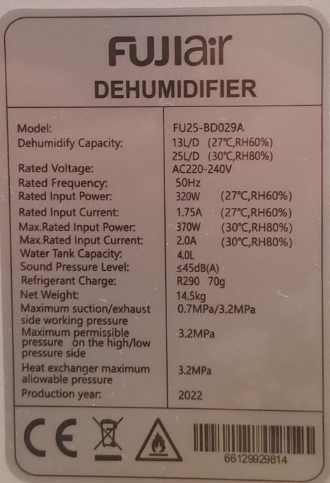 Prodajem odvlaživač zraka FUJIAIR Katana 25 L, model FU25-BD029A. Uređaj je rabljen jednu zimu, potpuno ispravan i uredno održavan. Korišten je u stambenom prostoru, bez ikakvih tehničkih ili funkcionalnih nedostataka.