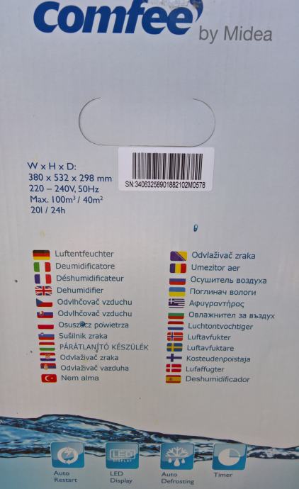 Odvlaživač zraka Comfee MDDF-20DEN3 - 20l/dan *NOVO NERASPAKIRANO*