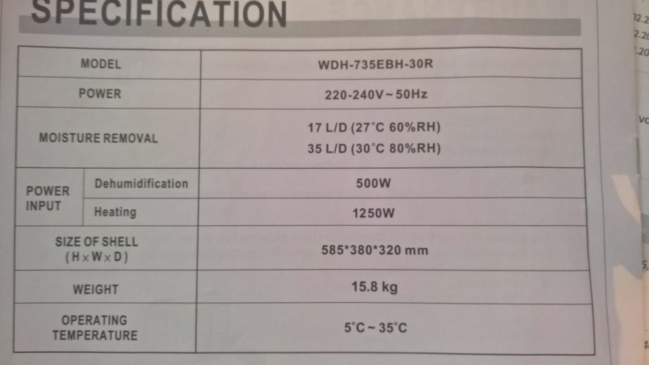 Uređaj je širine 38cm, dužine 32cm i visine 58cm, te je težak 15kg, na vrhu ima dršku i na dnu kotačiće što ga čini lakim i prenosivim iz prostorije u prostoriju, te dovoljno malim za lakim spremanjem kada više nema potrebe za uporabom.