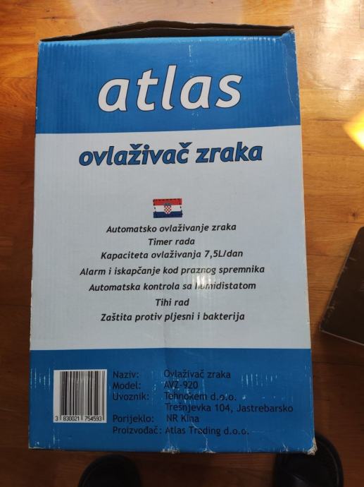 Prodaje se novi nikad korišteni ovlaživač zraka Atlas AVZ-920