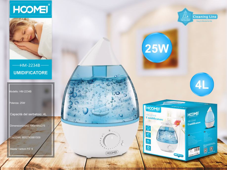ZAPREMNINA VODE U OVLAŽIVAČU JE 4 LITRE.