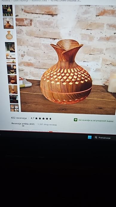 Drveni ovlaživač zraka, s difuzorom eteričnih ulja, usb napajanje, mijenja boje, boje svijetlog drveta.