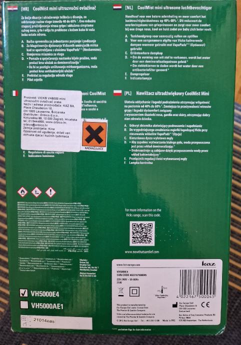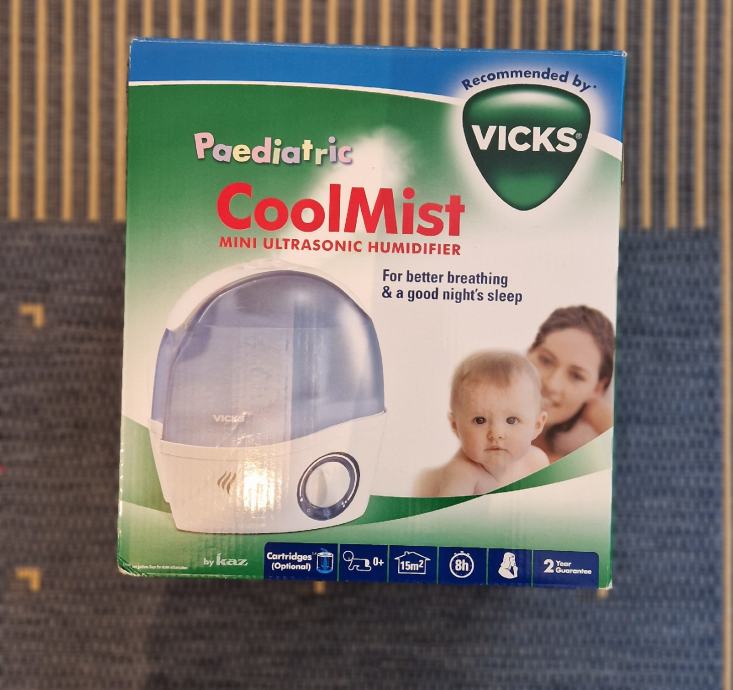 Vicks vh5000 mini ultrazvučni ovlaživač zraka za lakše bebino disanje i spavanje. za prostoriju od cca 15m2 i za 8h rada.