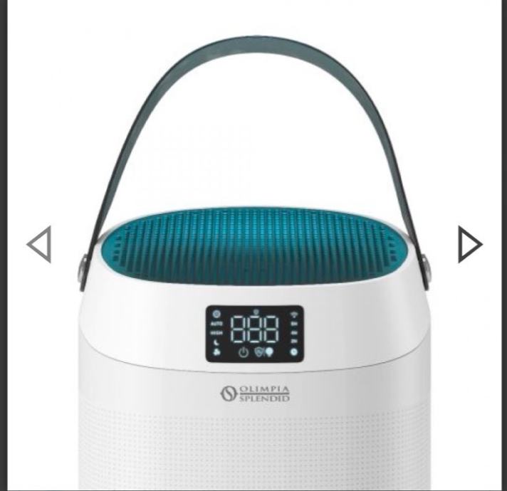 Olimpia Splendid aura care pročišćivač zraka, protok zraka do 400 m3/h, predfilter, aktivni ugljen, hepa filter (rezervni filter na poklon), UV-C lampa, timer. Za prostor do 80m2. Dimenzije: 27,53,30 (š,v,d), tezina 5 kg, vrlo malo koristen (5 dana).