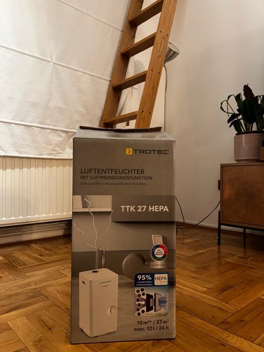 Prodajem Trotec TTK 27 HEPA – praktičan 2u1 uređaj: odvlažuje zrak i uz to, zahvaljujući HEPA filtru, dodatno pročišćava zrak (korisno kod prašine i alergena).