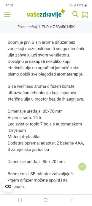 Prodajem u pola cijene kratko koristen, ocuvan kao nov difuzor zraka.