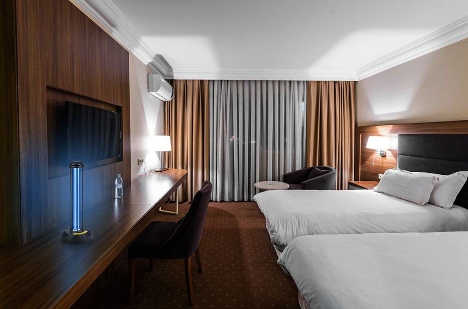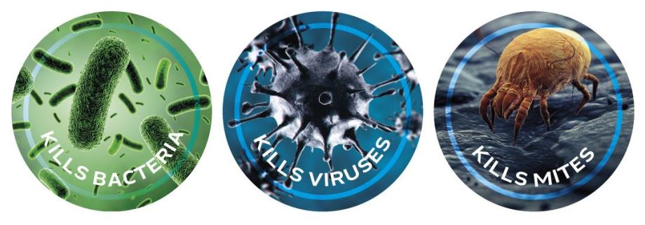 Uređaj emitira UVC zračenje koje se bori protiv virusa, bakterija, gljivica, plijesni i mikroorganizama. Emitirani valovi uništavaju genetski materijal virusa. Uređaj je opremljen funkcijom odgođenog pokretanja, koja vam omogućuje napuštanje sobe nakon pokretanja lampe. Ljudi, životinje i biljke ne smiju biti u sobama dok lampica radi. Proizvodom se može sigurno upravljati daljinskim upravljačem koji također djeluje kroz vrata. Funkcija ozonizacije sterilizira površine i smanjuje neugodne mirise. Ozon zaobilazi prepreke i doseže mjesta nedostupna UVC zrakama.