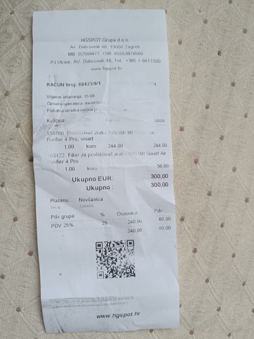 Prodajem pročišćivač zraka Xiaomi Smart Air Purifier 4 Pro. Uređaj je kupljen prije godinu dana, potpuno ispravan i bez vidljivih oštećenja.