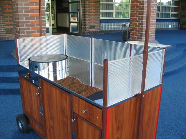 Kolica sa jednom plinskom pločom . Za lakše savladavnje neravnih puteva postavljeni su kotači sa zračnicama. Umjesto stakla radna ploha je ograđena mnogo lakšim , nelomljivim i vizualno zanimljivijim polikarbonatom. Certifikat, račun , jamstvo , kompletan dodatni pribor , izbor boja i dezena po Vašem izboru
