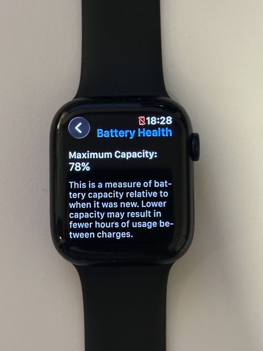 Apple Watch 8 45mm, aluminijski, jet black (crni) i kabel za punjenje.