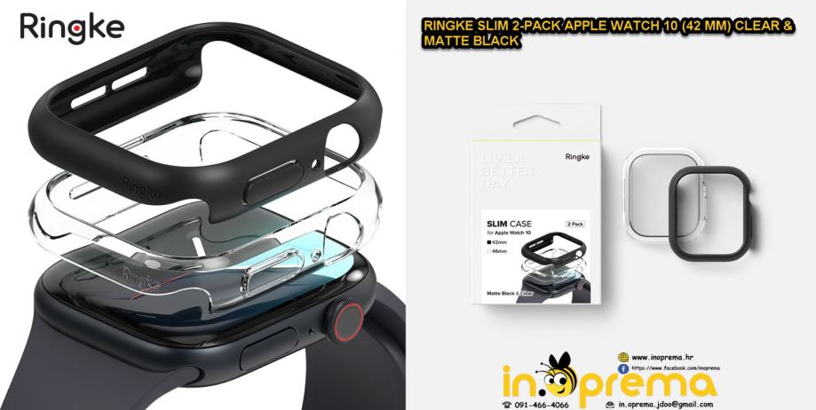 RINGKE SLIM 2-PACK APPLE WATCH 10 (42 MM) CLEAR & MATTE BLACK 091/466-4066
