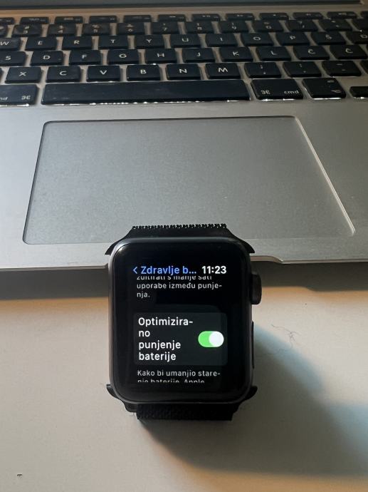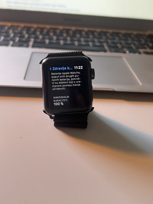 Apple watch 3, 38 mm, space gray aluminium, sport band, black. Kupljena dodatna narukvica u istyle-u - Milanese Loop. Sat je korišten godinu dana i potpuno je ispravan.