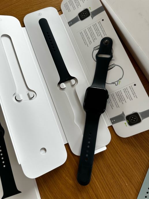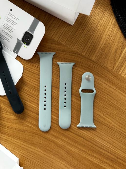 Koristen i ima tragove koristnje samo u vidu ogrebotina na satu i zato je cijena povoljnija, sve radi kao prvog dana . Uz crnu narukvicu uz sat ide i tirkizno plava original apple narukvica.