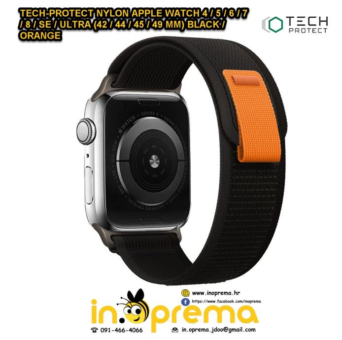 TECH-PROTECT NYLON APPLE WATCH 4 / 5 / 6 / 7 / 8 / SE / ULTRA (42 / 44 / 45 / 49 MM) BLACK / ORANGE ORIGINAL ORGINAL 091/466-4066