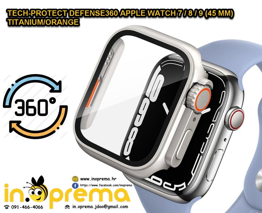 TECH-PROTECT DEFENSE360 APPLE WATCH 7 / 8 / 9 (45 MM) TITANIUM/ORANGE ZASTITA ZASTITA ZASTITNA MASKICA NARUKVICA REMEN 091/466-4066